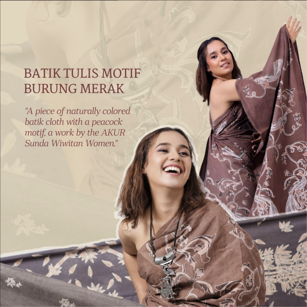 This hand drawn batik, colored with natural dyes and adorned with a vibrant peacock motif, is created by women of the AKUR Sunda Wiwitan community. Here, art flows with life β shaped by land, tradition, and care.
