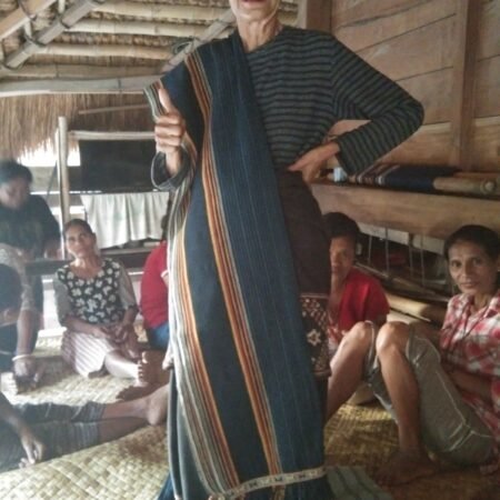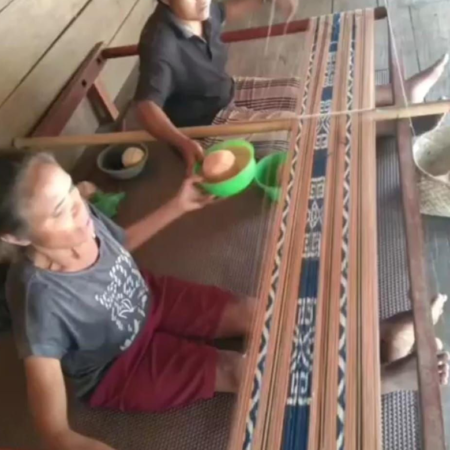 The weavers practice plant-based dyeing and handweaving techniques passed down through generations — rooted in ecological intimacy and cultural continuity.