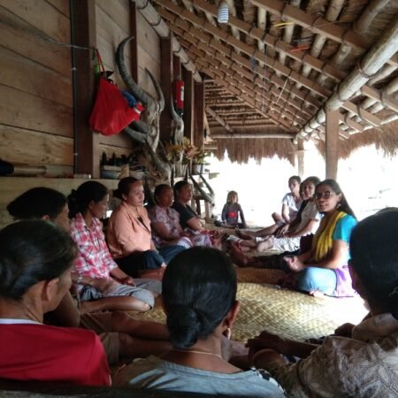 Before any dye touches cloth, we begin by listening — conducting a careful assessment of local needs, knowledge, and opportunities. This process brings us into dialogue with artisans, including male yarn spinners and women weavers, to understand their daily lives, roles, and aspirations.